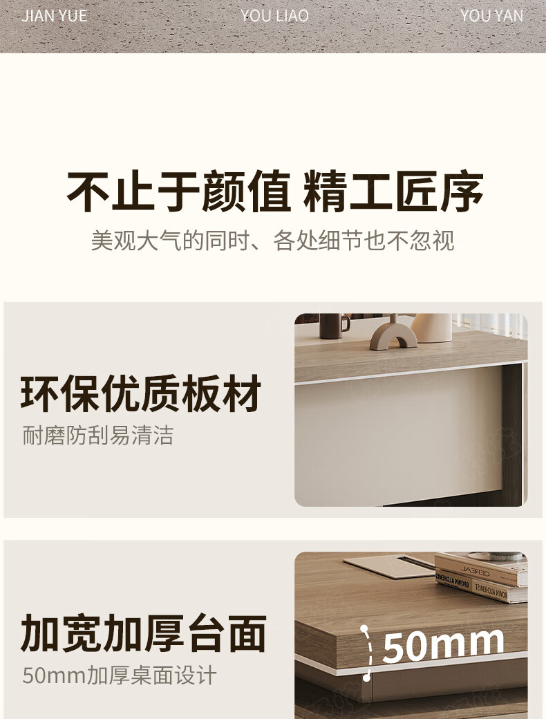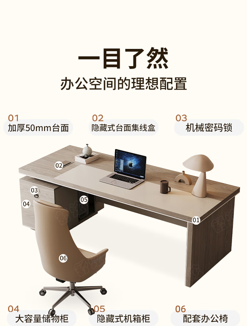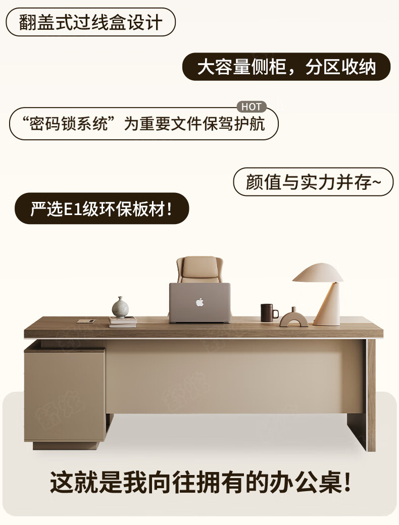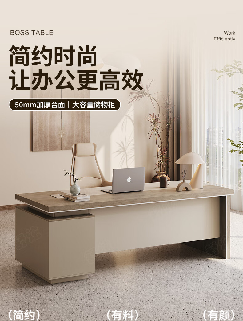 老板桌办公桌简约现代大班台总裁桌经理桌办公家具办公桌椅组合 1.6米老板桌+侧柜